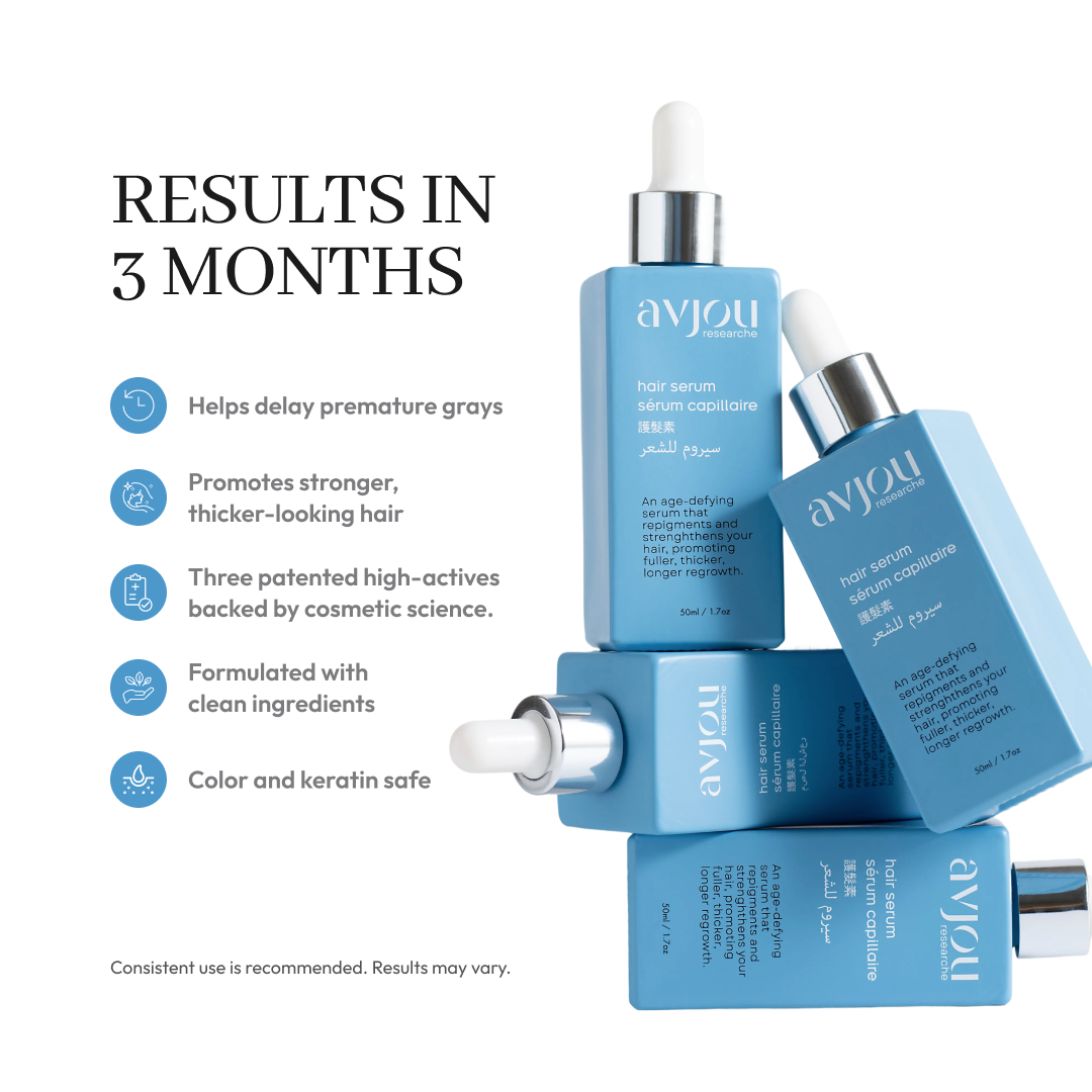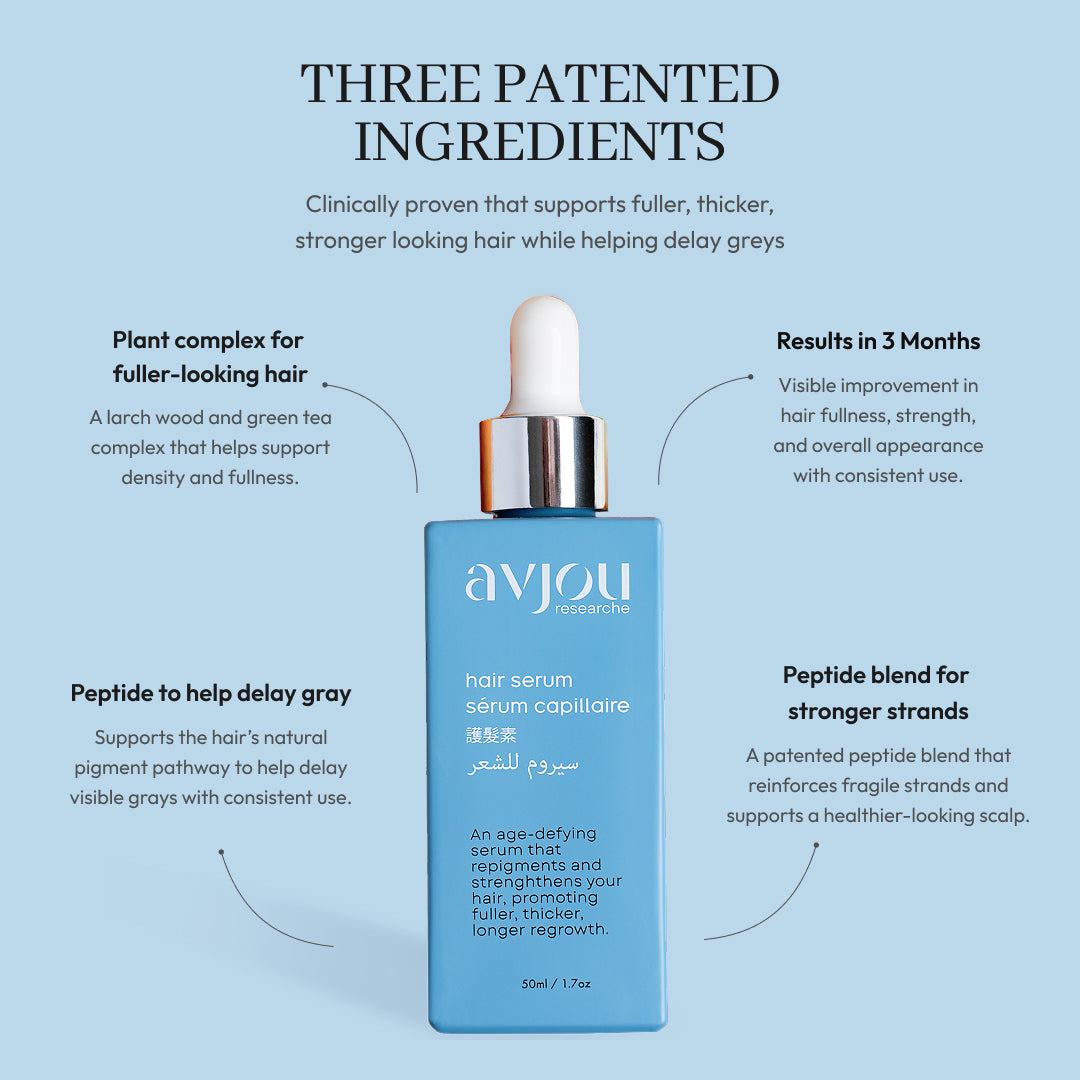Use the Avjou Researche® Hair Serum consistently to experience the best results.